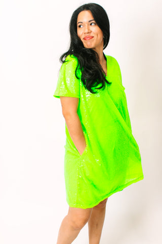 Black Sequin Crew Neck T-shirt Dress