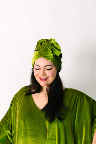 Fringe + Co. is the glittery, irreverent brainchild of creator and CSO (Chief Sequin Officer) Kelsey Campion. She learned to sew on a vintage 1973 sewing machine from Craigslist, and once she learned how to thread a needle, the rest is history. When Kelsey moved to New Orleans three weeks before Mardi Gras and started sporting her headwrap in Mardi Gras colors around town, people noticed, and Fringe + Co. took off.