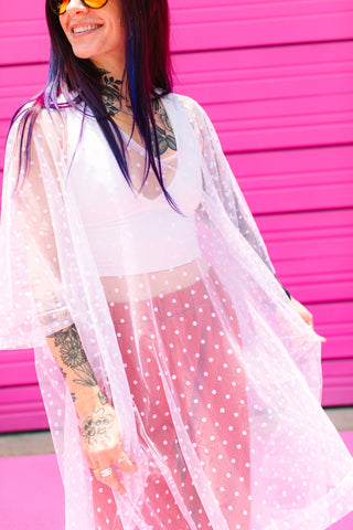 White Polka Dot Sheer Mid Caftan
