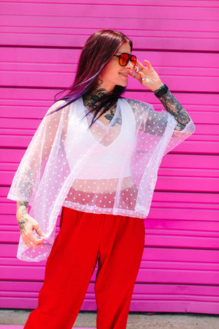 White Polka Dot Sheer Tunic