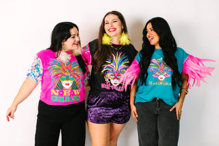 The Glitter Gras is the perfect combination of chic, comfort and FUN. From show-stopping party wraps to sparkling paillettes, these pieces are the perfect addition to your Mardi Gras closet. Get ready to parade party in style, babes.