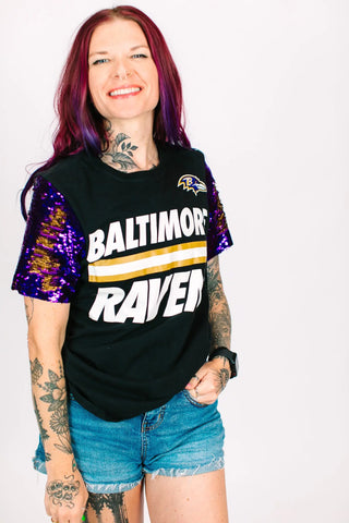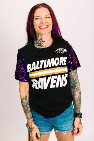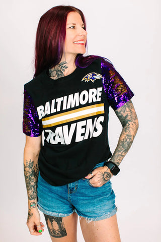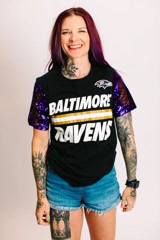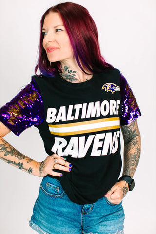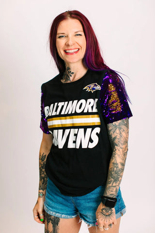 Be the life of the party with our party tees. These shirts got a glow-up with some sequin sleeves patterned from the original to ensure a perfect fit. Get ready to party in our sequin sleeve party tee!
