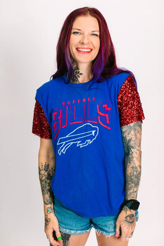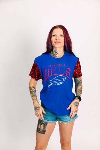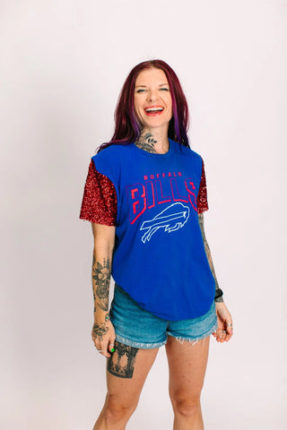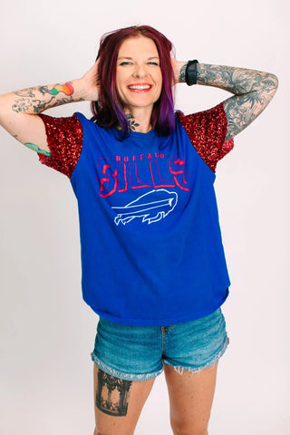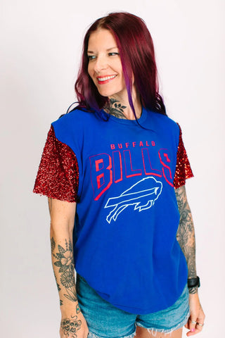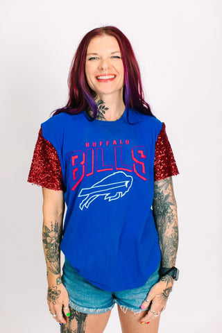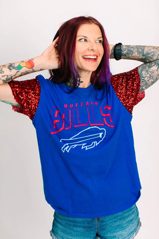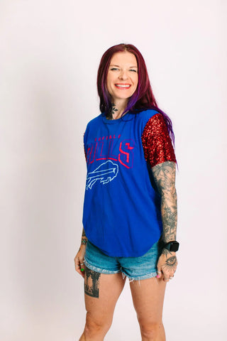 Be the life of the party with our party tees. These shirts got a glow-up with some sequin sleeves patterned from the original to ensure a perfect fit. Get ready to party in our sequin sleeve party tee!