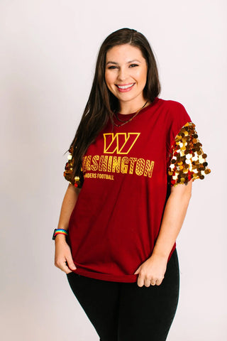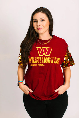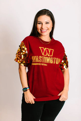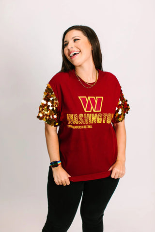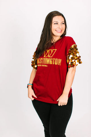Be the life of the party with our party tees. These shirts got a glow-up with some paillette sleeves patterned from the original to ensure a perfect fit. Get ready to party in our paillette sleeve party tee!