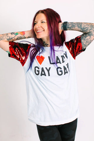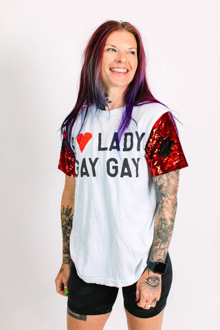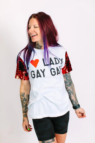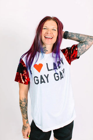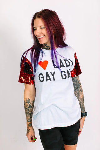 Be the life of the party with our party tees. These shirts got a glow-up with some sequin sleeves patterned from the original to ensure a perfect fit. Get ready to party in our sequin sleeve party tee!