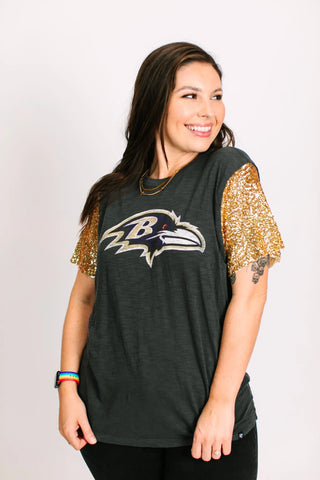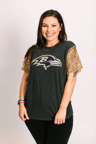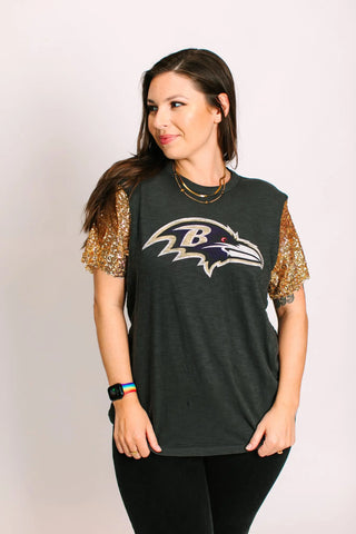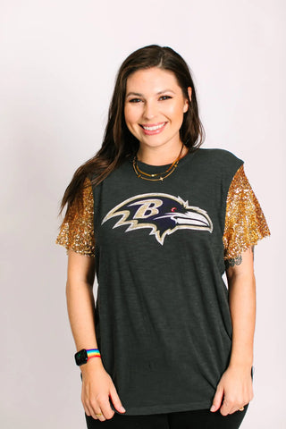 Be the life of the party with our party tees. These shirts got a glow-up with some sequin sleeves patterned from the original to ensure a perfect fit. Get ready to party in our sequin sleeve party tee!