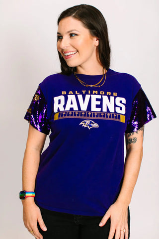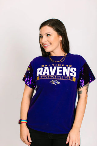 Be the life of the party with our party tees. These shirts got a glow-up with some sequin sleeves patterned from the original to ensure a perfect fit. Get ready to party in our sequin sleeve party tee!